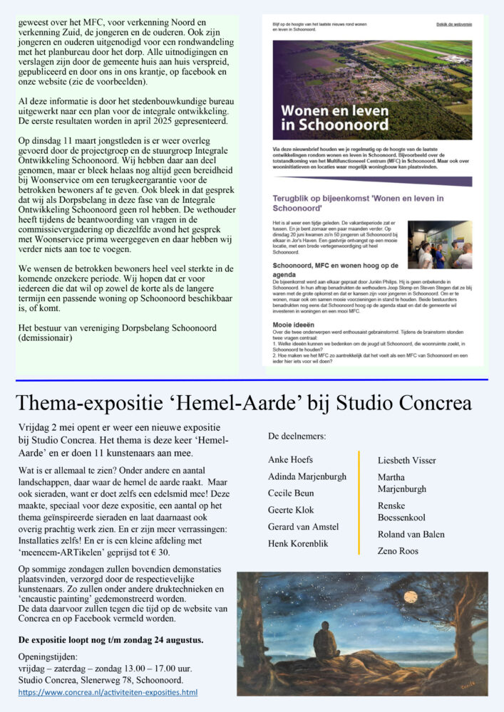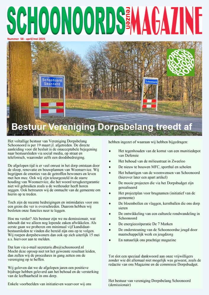 Bestuur Dorpsbelang Schoonoord treedt af