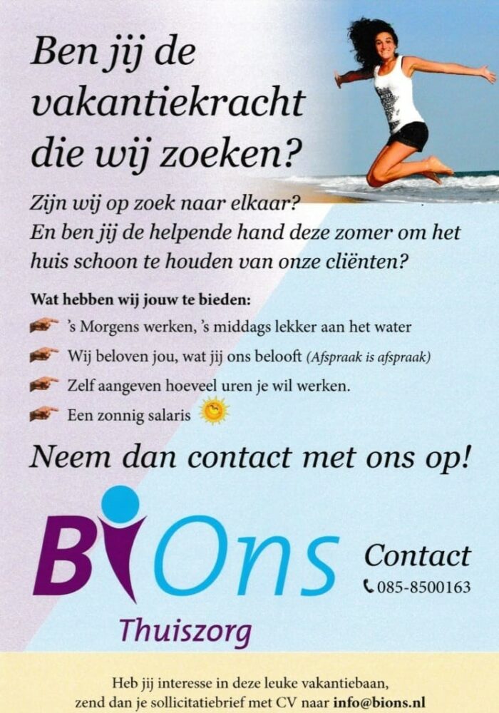 | “Bouwmarkt Schoonoord zoekt een hulpkracht voor de zaterdag en vakanties! Ben je klaar met school en zoek je een bijbaan? Verveel je je thuis? Wil je wat leuks te doen hebben zonder al te veel verplichtingen? Zijn de kinderen de deur uit en heb je tijd over? Kom dan gezellig bij ons werken! Kom langs bij de winkel of stuur een e-mail naar info@bouwmarktschoonoord.nl. Zie we jou straks bij ons komen werken?” |